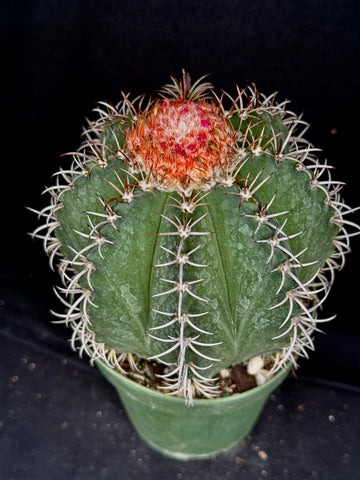 Plant is in 4 inch container with the single stem that is over 3 inch in diameter and 4-5 inch high. flowering size with cephalium. Originally from Cuba, Matanzas Province.